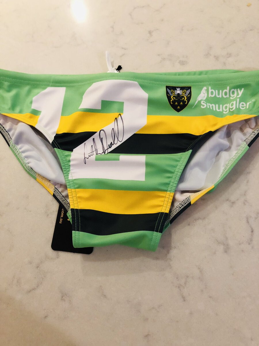 A pair of Rob Horne Derby Day Budgy Smuggler briefs, kindly donated by Francois Van Wyk. These exclusive Budgy Smugglers were produced especially for the 2019 East Midlands Derby at Twickenham, and are no longer available to buy anywhere else. We will get these signed by the (current) Saints player of your choice before presenting these to you. (image is a guide so number/signature may vary)