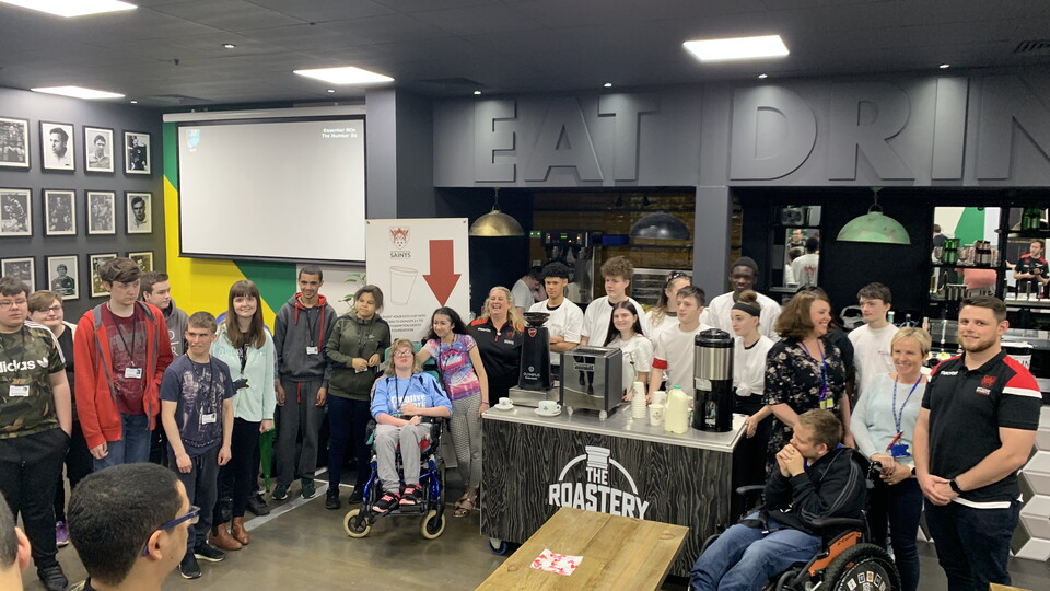 Northampton Saints Foundation last week encouraged students to put their newly-forged barista skills to the test by hosting a coffee morning at Franklin’s Gardens.